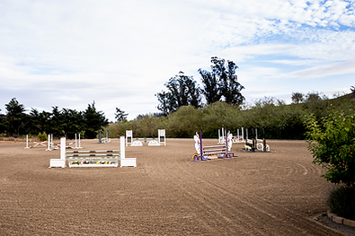 270′ x 165′ outdoor arena with show quality jumps and custom footing blend